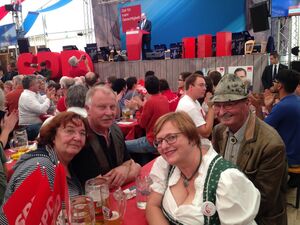 Auf dem Bartholomämarkt in Aufhausen hatte "unser" Landtagskandidat Matthias Jobst seinen ersten Bierzeltauftritt. Kurz erläuterte er seine politischen Ziele, denn es ist nicht einfach als "Vorband" vor einem großen Star aufzutreten. Ex-Außenminister Sigmar Gabriel kam mit einiger Verspätung. Er war bestens gelaunt und zog die Zuhörer in seinen Bann. Ein gelungener Auftritt für alle Beteiligten.